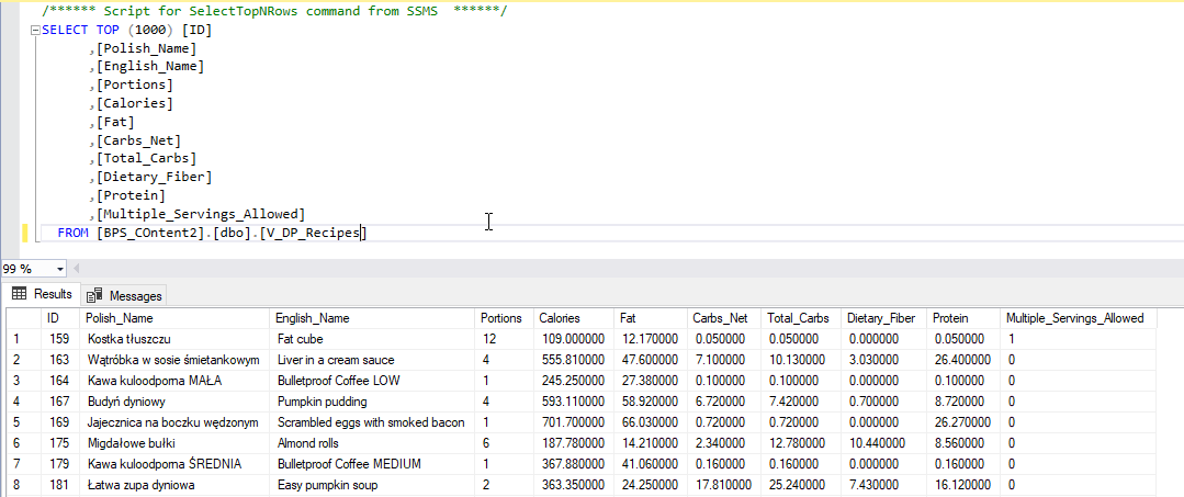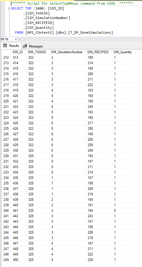 Rescue from this oppression turned out to be a consultation with a programmer I know, who was able to help me. He suggested how to solve the problem of drawing recipes from the prepared set, along with many additional parameters (chapeau bas Marcel Zięba). He prepared and explained to me a Python script that used the PuLP library. This library is used to solve linear programs in Python. Thanks to this, and my SQL views (recipes and simulation orders) based on WEBCON BPS database, the program downloaded and randomized a set of recipes with specific parameters. Then saves back results in the prepared custom SQL table.